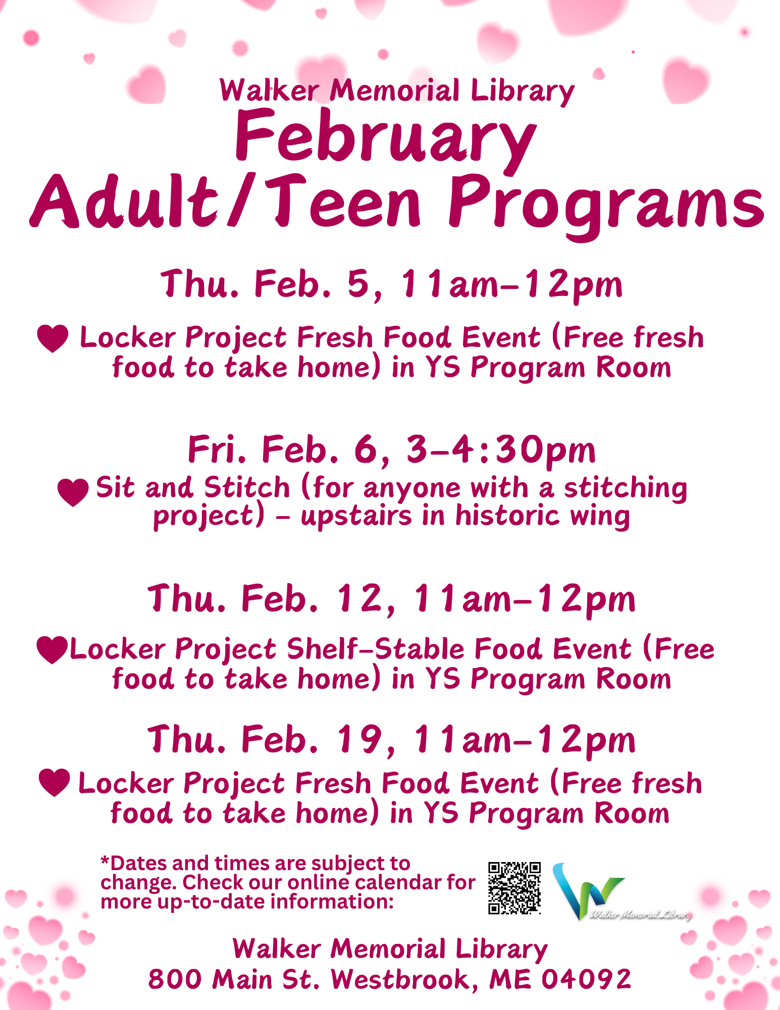 FEBRUARY PROGRAMS at Walker Memorial Library